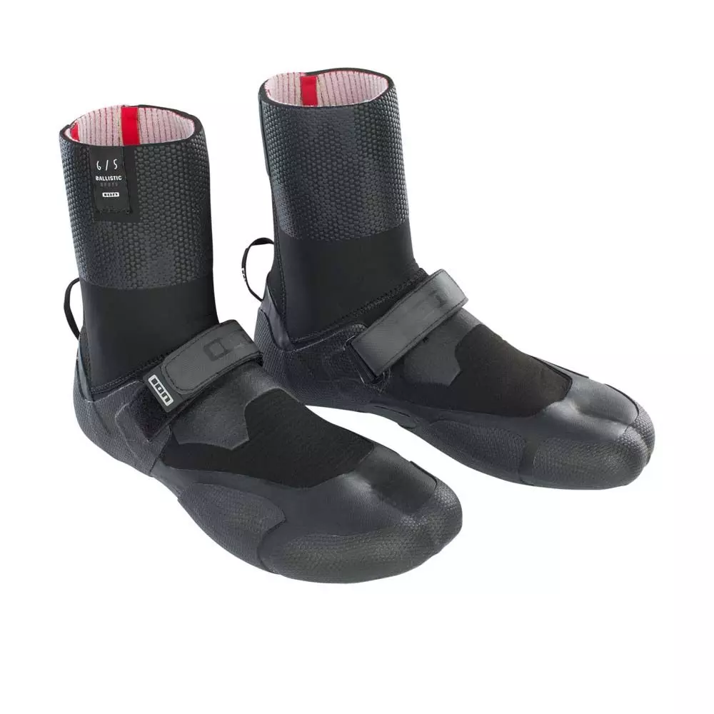 Die ION Ballistic Boots IS Neoprenschuhe haben einen High-Cut mit einem hohen Schaft, der bis über den Knöchel reicht. Hierdurch ist dieser wärmer und gibt mehr Halt. Das Anziehen kann durch (Neopren-)Socken erleichtert werden.