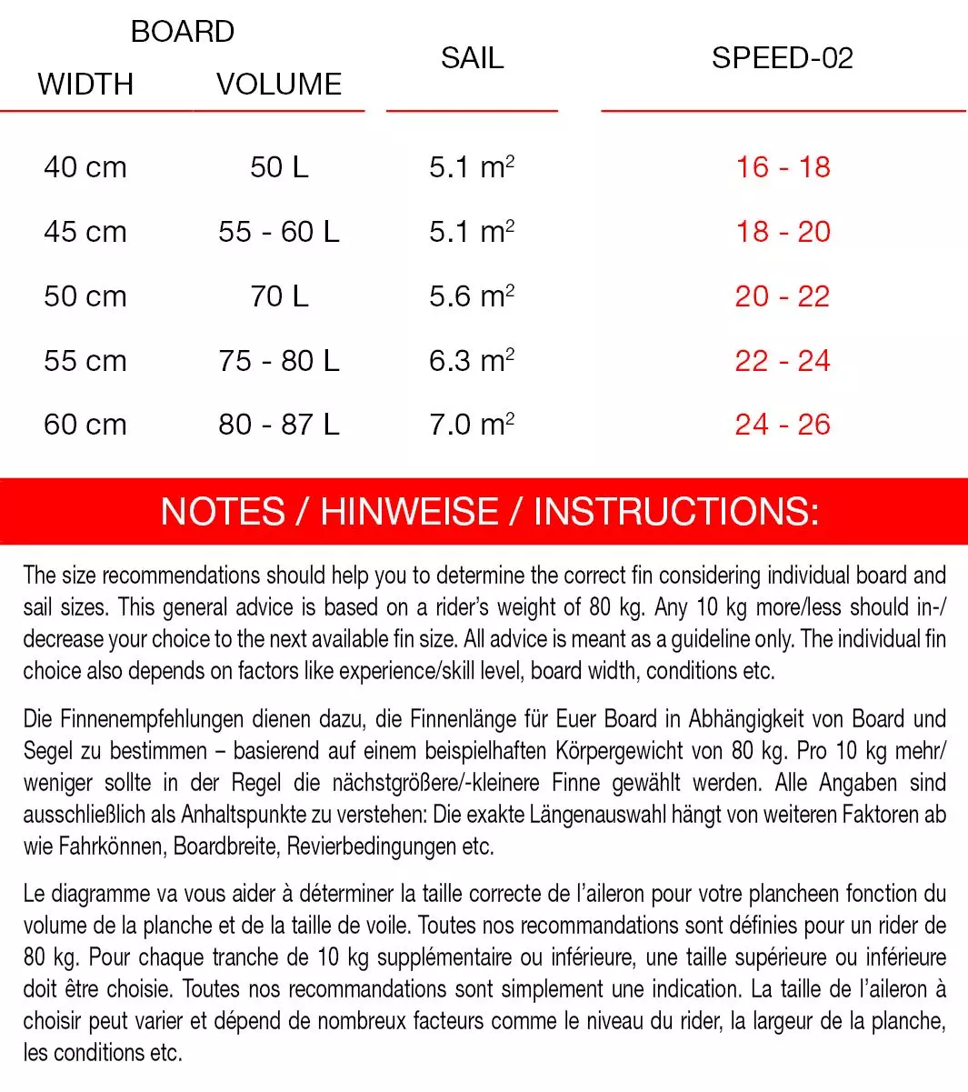 Ein neues Profil und eine breitere Outline mit etwas mehr Rake und breiterer Basis zeichnet die Speed-02 aus. Sie wurde speziell fü r den absoluten Speed-Freak und glattes Wasser entworfen. Je nach Finnenflä che ist sie DIE Waffe fü r den Bereich von 40 bis zu ü ber 50 Knoten Geschwindigkeit. Sehr schnell und laufruhig.