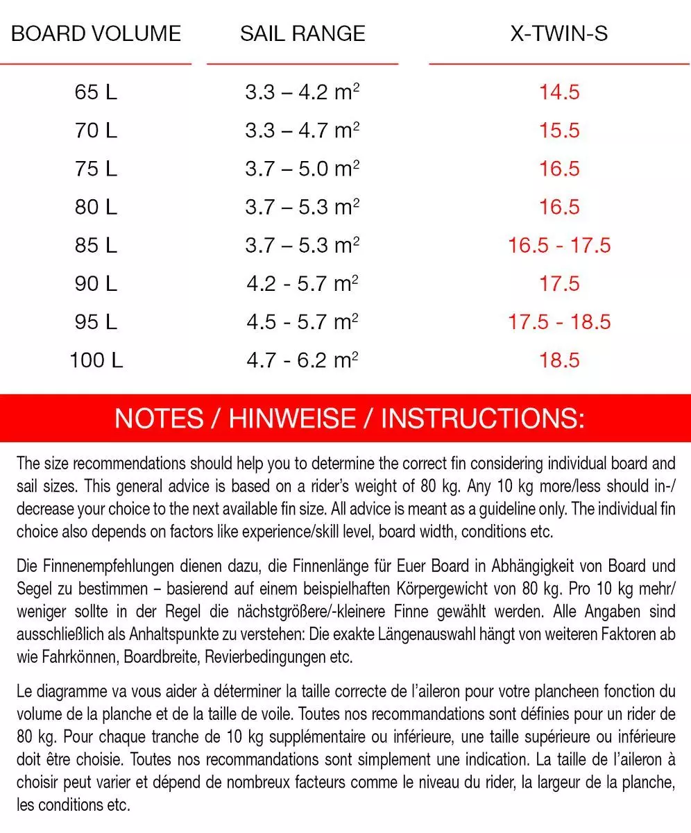 Die X-Twin-S (S = Swept back) entspricht in ihrem Verhalten der X-Twin: Schnell, guter Grip beim Absprung und sehr wendig. Mit einem Rake von 38 Grad kö nnen alle Multi-Fin-Boards ohne Probleme auch bei Grasbedingungen wie z. B. von unseren Profis auf Teneriffa gefahren werden.