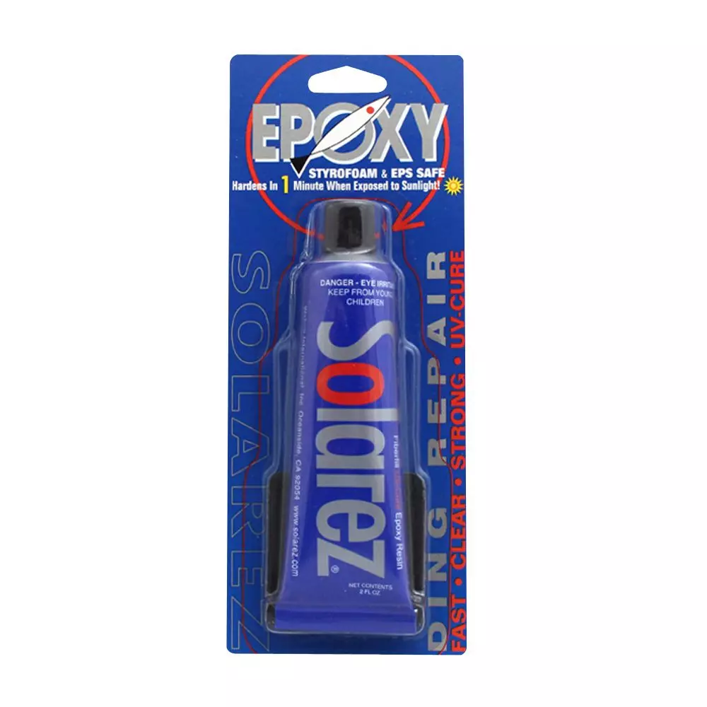 SOLAREZ Epoxy Reparaturkitt ist eine Mischung aus klarem, hochfestem, faserverstärktem Epoxidharz und einem erstaunlichen solaraktivierten Katalysator. Es ist kein Mischen erforderlich. Benutze es einfach direkt aus der Tube. Es geliert in 5 Sekunden, Aushärtung in 3 Minuten – aber nur bei Sonneneinstrahlung.