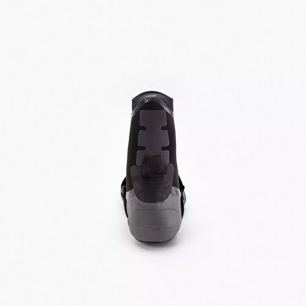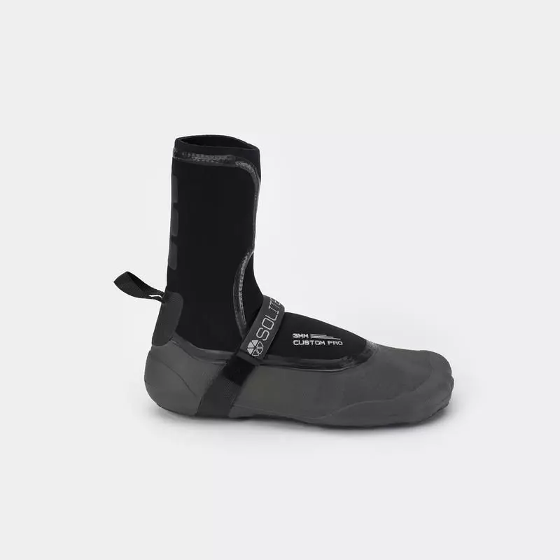 Die Solite 3MM CUSTOM PRO Neoprenschuhe haben einen High-Cut mit einem hohen Schaft, der bis über den Knöchel reicht. Dadurch ist er wärmer und bietet einen festen Sitz. Das Anziehen ist oft etwas mühsam. (Neopren-)Socken können das Anziehen erleichtern.