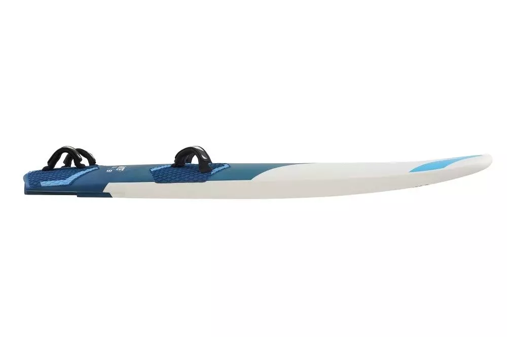 Foil-Windsurfbretter haben in der Regel eine längere und schmalere Form als herkömmliche Windsurfbretter und verfügen oft über ein integriertes Tragflächensystem. Das Brett besteht in der Regel aus einem leichten, steifen Material wie Kohlefaser oder Verbundwerkstoffen.