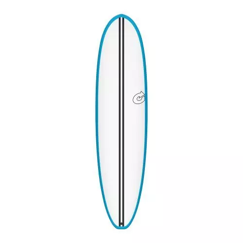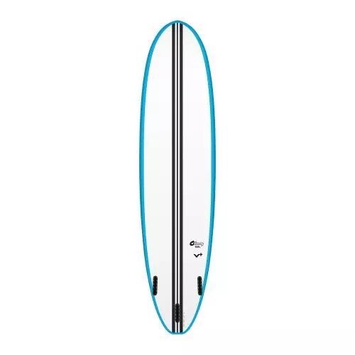 - In der TORQ Epoxy Composite Herstellung werden auf in Deck und Bottom je eine Lage 6oz und 4oz Fiberglas sowie Carbonverstärkungen (im Tail) verarbeitet. Die Unterseite ist im Tailbereich ebenfalls mit Carbon verstärkt und verfügt zusätzlich über einen Carbonstreifen, der sich über die komplette Länge erstreckt und das Board so mit kontrolliertem Flex und lebendiger Response ausstattet.